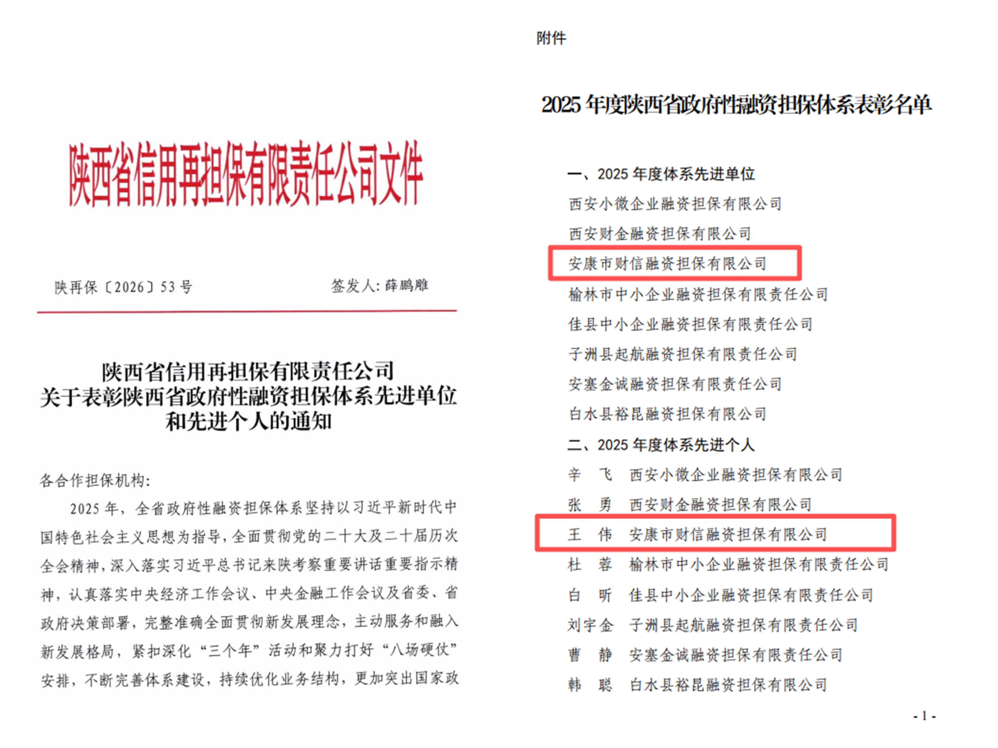 近日,陜西省信用再擔(dān)保有限責(zé)任公司印發(fā)《關(guān)于表彰陜西省政府性融資擔(dān)保體系先進(jìn)單位和先進(jìn)個(gè)人的通知》(陜?cè)俦!?026〕53號(hào))文件,安康市財(cái)信融資擔(dān)保有限公司榮獲2025年度陜西省政府性融資擔(dān)保體系“先進(jìn)單位”,公司風(fēng)控評(píng)審部副經(jīng)理王偉同志喜獲體系“先進(jìn)個(gè)人”榮譽(yù)表彰。